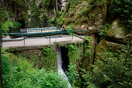 Der Lichtenhainer Wasserfall wird regelrecht inszeniert. Alle 30 Minuten ertönt Musik.