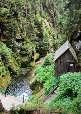 Der Lichtenhainer Wasserfall ist ein wichtiger Ausgangspunkt für vielfältige Wanderungen ins Affensteingebiet,