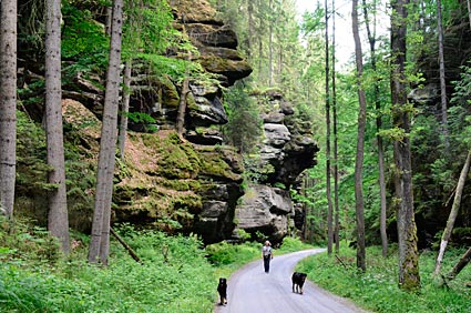 Vom Parkplatz an der Neumannmühle führt die Zschandstraße durch ein enges, wildes Tal. Autos fahren hier keine.