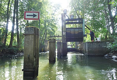 Ab und zu trifft man auf eine Schleuse, die gegen kleines Entgelt von freundlichen Anwohnern bedient wird.