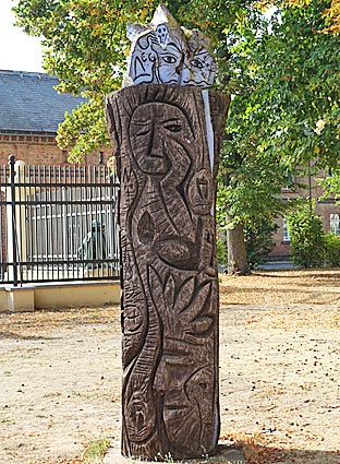 Die spiralförmigen Ornamente um die Säule im Eingangsraum sollen "Spiritualität" symbolisieren.