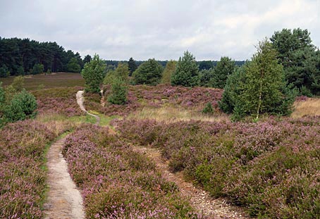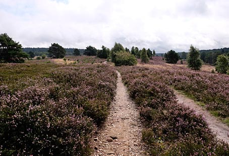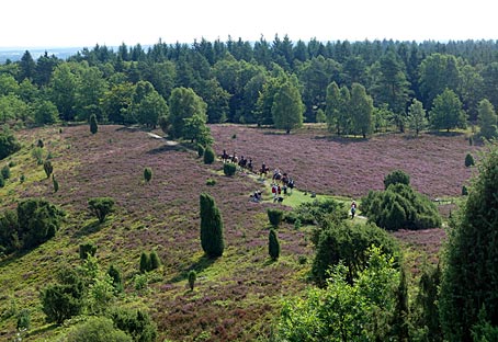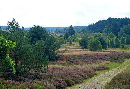 Nach der Umrundung des Totengrunds sind wir kurz vor dem beliebten Aussichtspunkt in Richtung Wilseder Berg abgebogen.