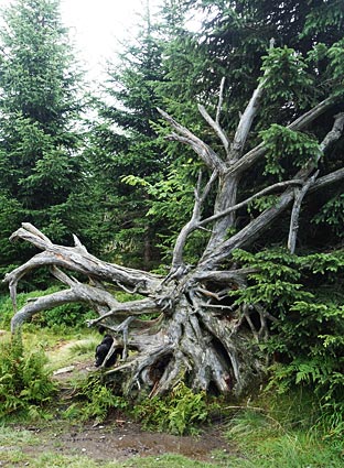 Unter diesen Klimaverhältnissen gedeihen nur wenige Baumarten, vor allem die Bergfichte.