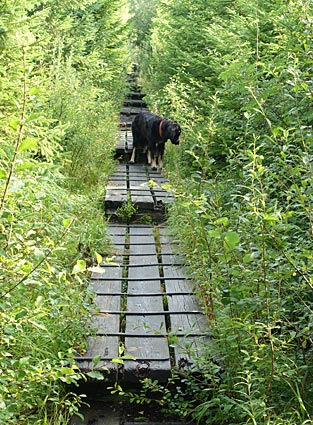 < in moorigen Bereichen verlief der Weg über Bohlenstege |