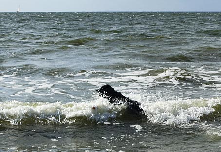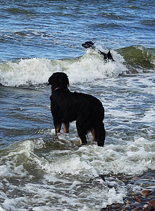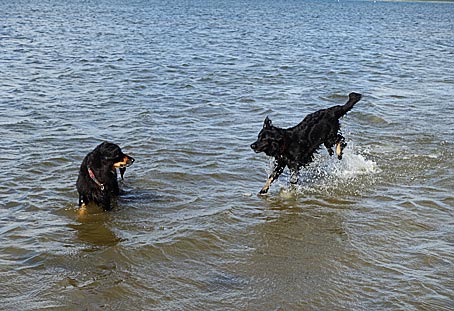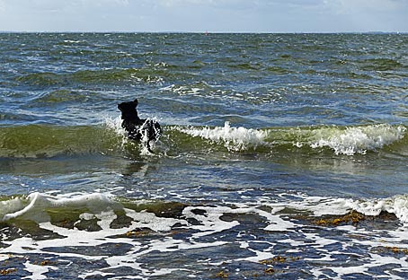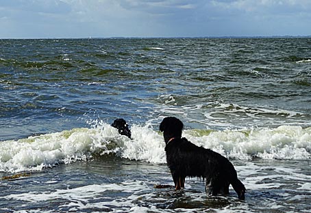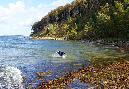 Heute steht mit Greifswald wieder eine Stadtbesichtigung an. Aber vorher sollten die Hunde noch mal ausgiebig baden und toben können.