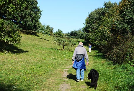Bis man zum ersehnten Ufer kommt und die Hunde frei lassen kann, muss man allerdings relativ weit über Straßen und an Privatbesitz vorbei laufen.