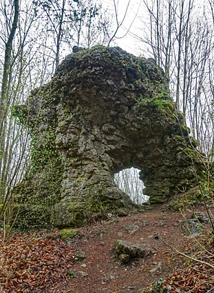 Das Quackenschloss ist ein eindrucksvoller Felskoloss mit einer Höhlenruine und einem 18 m langen Durchgang.