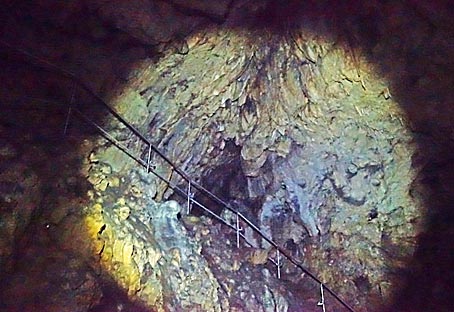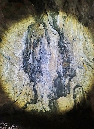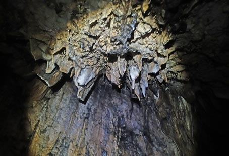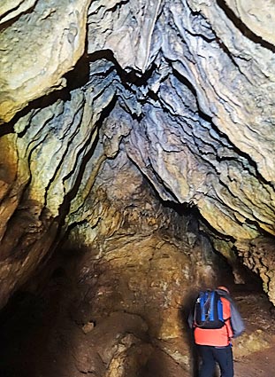 Entlang einer Deckenspalte, an der der Höhlenraum angelegt ist,