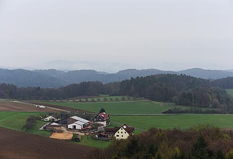 Vom 12 m hohen Aussichtsturm auf dem Hohen Kreuz (522 m)