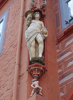 ^ Das Dukatenmännchen hockt unter der Göttin des Überflusses.