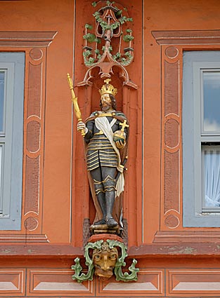 mit seinen barocken Kaiserfiguren in der gotischen Fassade.