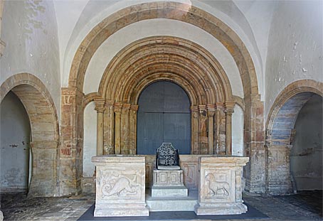 Der "Kaiserstuhl" mit seinen reich geschmückten Sandsteinschranken, Thronsessel der Kaiser und Könige,