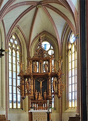 links: Der aus dem Jahre 1659 stammende kunstvolle Hochaltar zeigt Szenen aus dem Ostergeschehen.