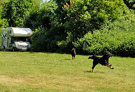 Auf der großen Stellplatz-Wiese konnten die Hunde anschließend ausgiebig toben.