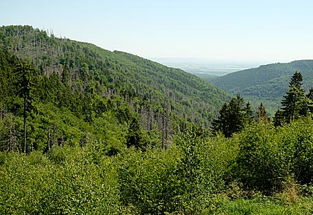 Hier sieht man überall 50-60jährige Fichtenplantagen, |