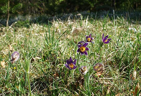 Auf den Halbtrockenrasen leben viele sehr seltene Tier- und Pflanzenarten wie die Küchen-/Kuhschelle (Pulsatilla vulgaris).