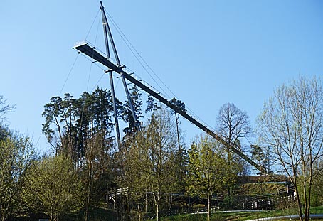 Ganz Mutige können sich hier am Bungee-Seil in die Tiefe stürzen.