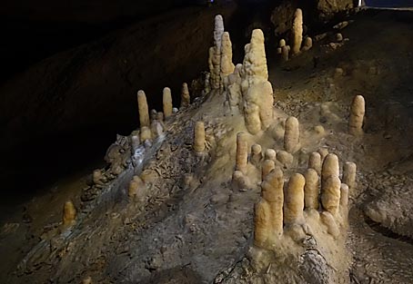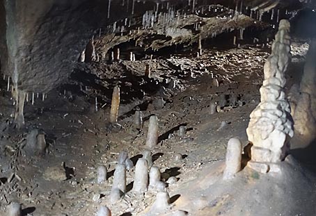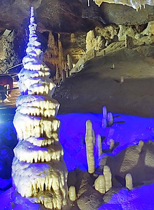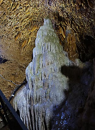 links: "Kaiser Barbarossa": Der wohl schönste Tropfstein der Höhle ist etwa 1,20 Meter hoch und wird auf über 200.000 Jahre geschätzt.