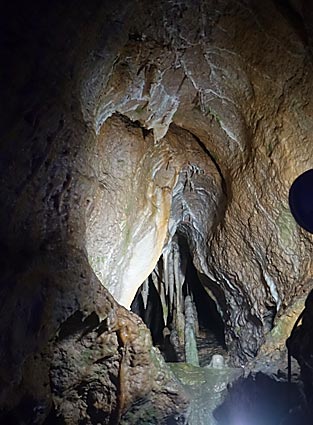 Die Kleine Teufelshöhle ist durch einen für den Besucher nicht zugänglichen Höhlengang, |