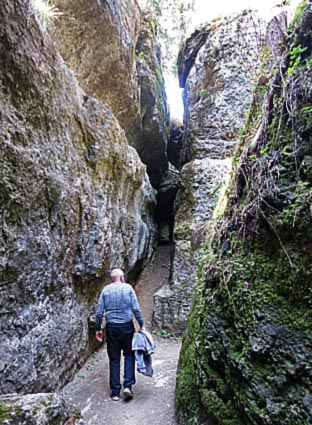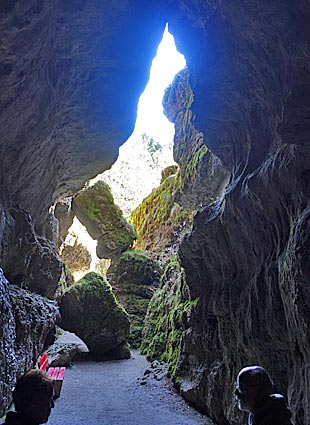 Der Ausgang der Höhle liegt in einer klammartigen Schlucht,