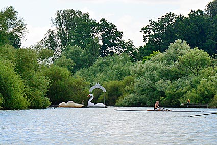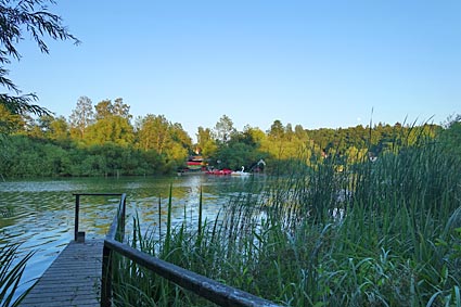 Das weiße Schwanen-Tretboot war weithin zu sehen und wies den Weg zum Bootssteg.