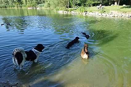 Im Kirchsee stürzten sich die Hunde sofort in die Fluten und fanden auch bald Gesellschaft.