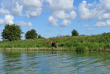 Am NOK bietet sich das Fahrrad fahren regelrecht an. Helmut hat mit der Fähre zur anderen Seite übergesetzt.