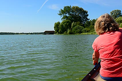 Auch diesmal sind wir vormittags erst mal zu einer Paddeltour über den See aufgebrochen.