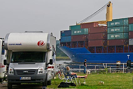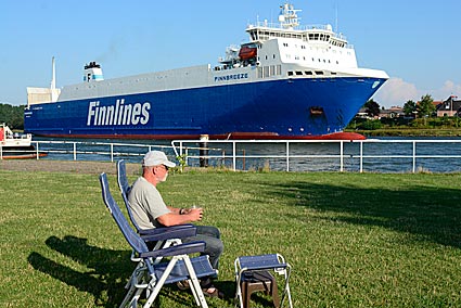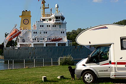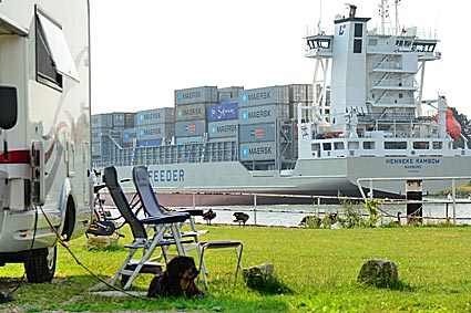 Entspannung pur auf dem Stellplatz an der Fähre in Sehestedt. Einfach nur vor dem Wohnmobil sitzen, die Seele baumeln lassen und dem Treiben zuschauen. Und zu sehen gab es immer was. Die Möven, Enten und Gänse gingen vor dem Wohnmobil ihren täglichen Geschäften nach, und die Fähre pendelte pausenlos hin und her. Und immer wieder fuhren die unterschiedlichsten kleinen oder großen Schiffe direkt an unserem Wohnmobil vorbei.