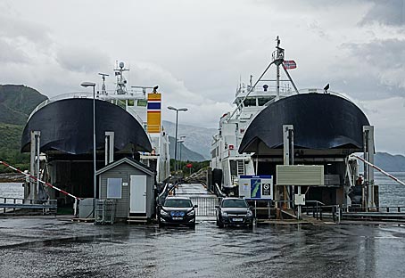 Warten an der Fähre in Holm. Der Montag Vormittag war einer der wenigen Tage, an denen es leicht regnete.