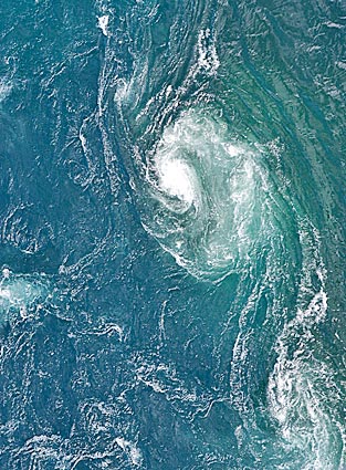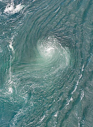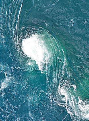 Die gewaltigen Strudel, die dort entstehen, können einen Durchmesser von bis zu 10 m haben und reichen bis zu 4 m in die Tiefe.