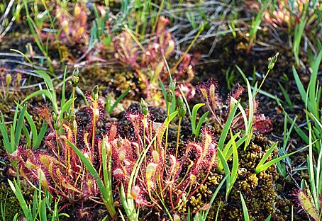 In den moorigen Bereichen habe ich kräftige Bulben von Sonnentau (Drosera) gefunden, einer seltenen fleischressenden Pflanze.