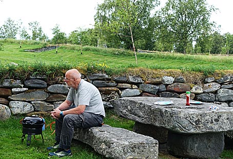 Grillen auf einem Picknickplatz am Tjøttaveien (65.8451, 12.3951) neben einem internationalen Kriegsgräberfriedhof.