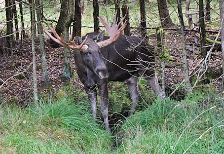| Auf der weiteren Fahrt traute ich meinen Augen nicht: Da stand doch wirklich ein riesiger Elch neben der Straße! |