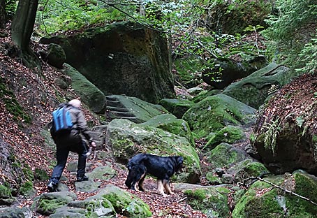 mit abenteuerlichen Felsformationen und Steiganlagen am Winterstein, dem malerischen Pfad durch das Heringsloch