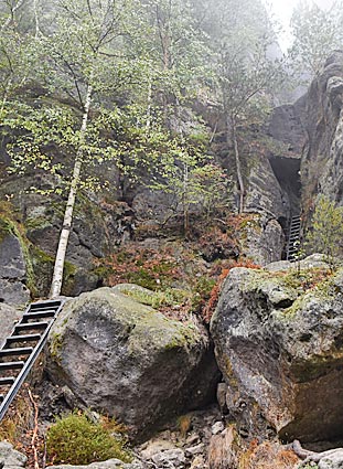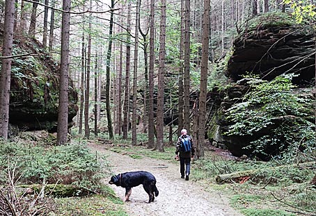 Bequeme Wege führten uns durch den großen Zschand, dem längsten Trockental der Sächsischen Schweiz, vorbei am bereits 1642 erwähnten Zeughaus.
