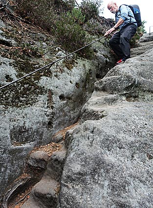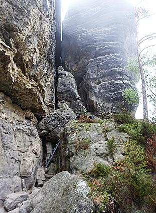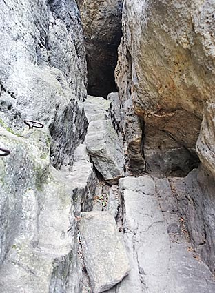 Auf das Hintere Raubschloss kann man mit einer wirklich sehr interessanten Steiganlage durch eine Felsspalte hoch klettern.
