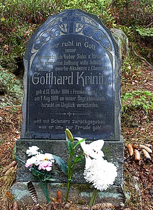 1908 starb unter der glatten Felswand der 19jährige Student Krinitz. |