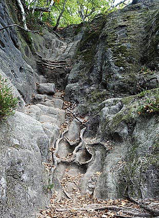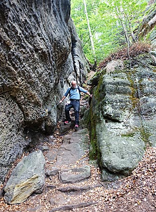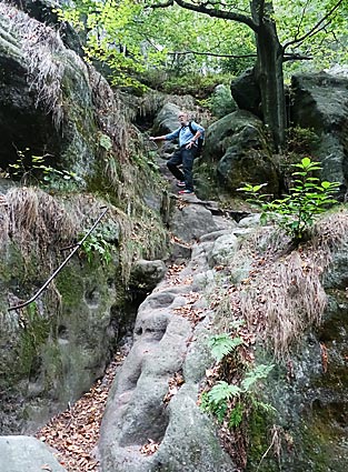Im Heringsloch führt der Pfad steil aufwärts durch eine wildromantische Schlucht.