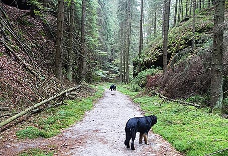 Die Hunde hätten mit dem schmalen Pfad sicher kein Problem gehabt, wohl aber Wanderer, die ängstlich auf zwei Respekt einflößende, große schwarze Hunde reagieren.