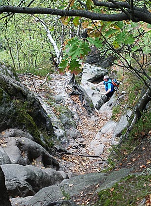 Der Weg durch die Richterschlüchte ist recht blockreich. |