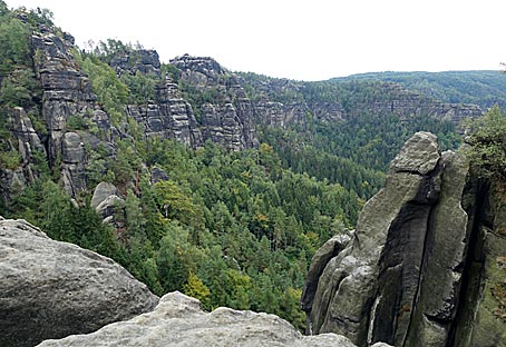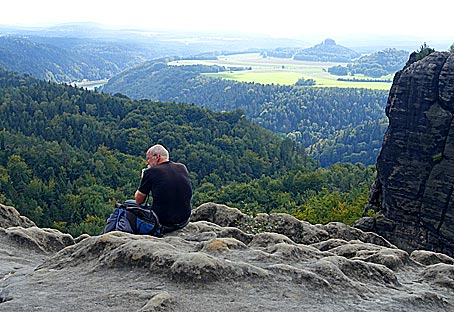 Nach sehr steilem Aufstieg erreichten wir die "Kleine Bastei" mit ihren beeindruckenden Fernsichten.