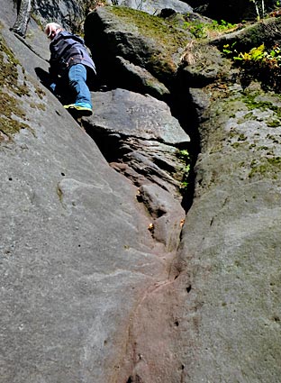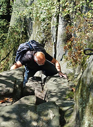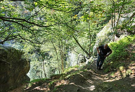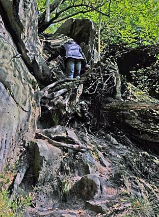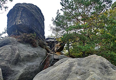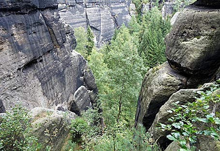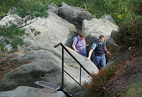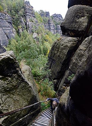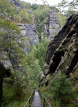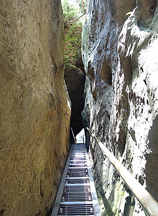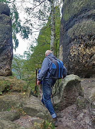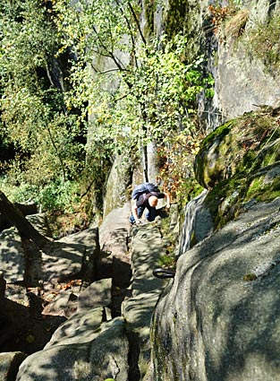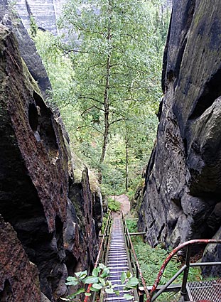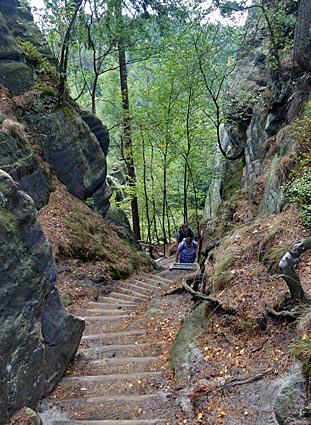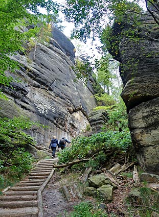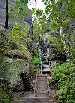 Aus dem Schmilkaer Kessel führen viele landschaftlich beeindruckende Stiegen durch die steilen, zerklüfteten Wände.