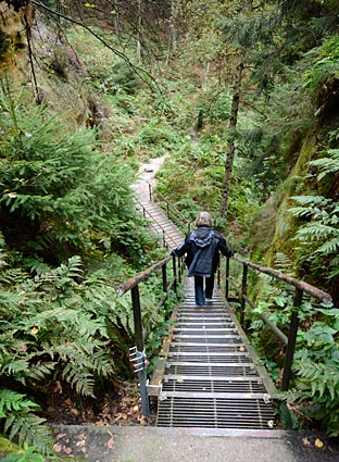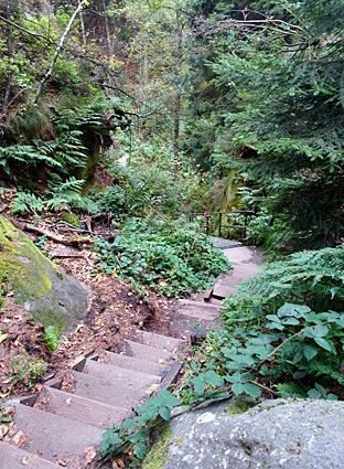 ging es über lange Stufenreihen im Wald steil abwärts ins Polenztal.
