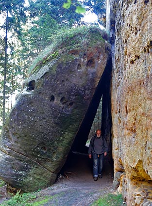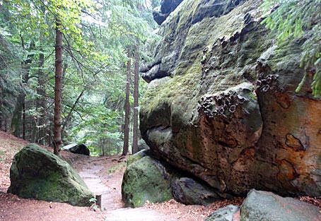 links: der Kelchstein am Ende des Zurücke-Steigs.