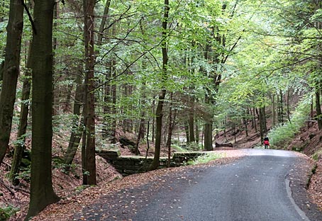 Durch den sandigen Heringsgrund und über die asphaltierte Winterbergstraße geht es stetig abwärts,