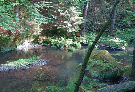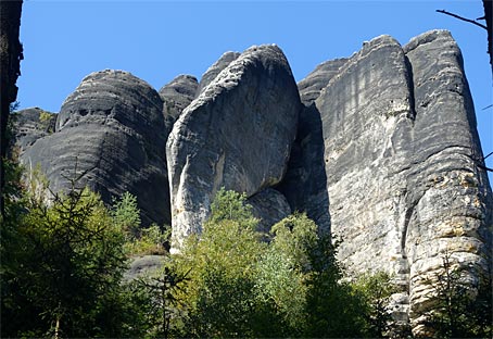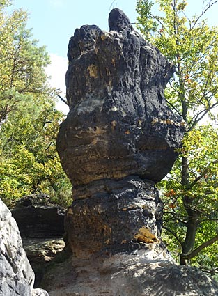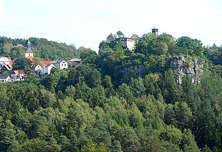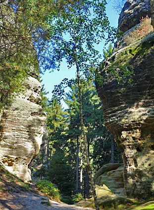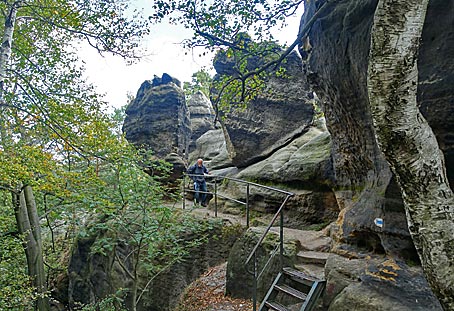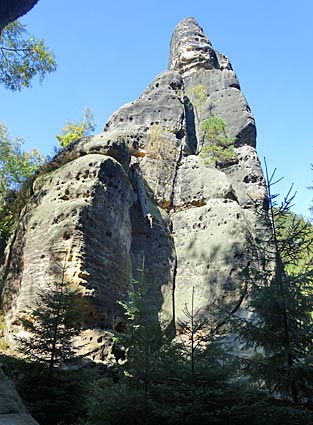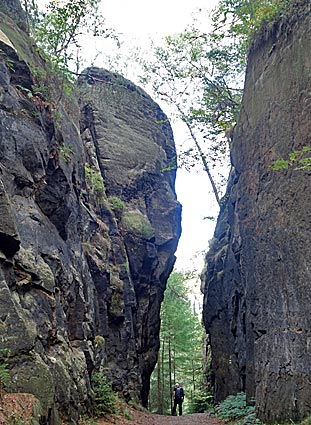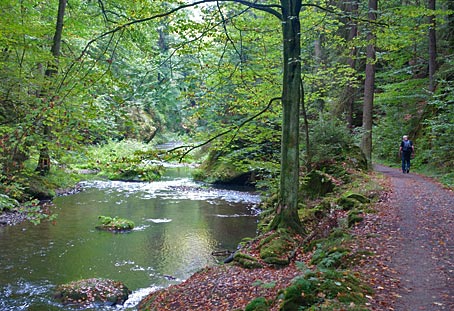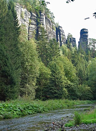 Der Weg führte nun ein längeres Stück durch das Engtal der Polenz. Als der Polenztalwächter ins Blickfeld kam, > |