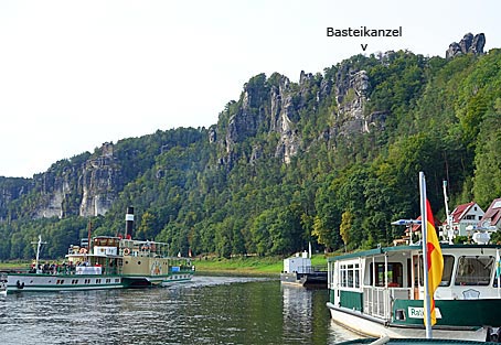 Nachdem wir auf der anderen Elbseite im Restaurant "Elbewirt" mit Blick auf die Basteifelsen sehr gut gegessen hatten,