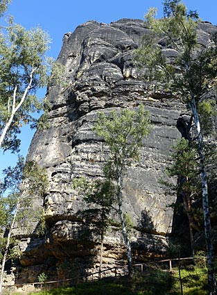 Auf dem bequemen Elbleitenweg ging es an der Westkante des mächtigen Rauschensteins vorbei