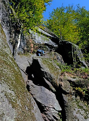 Die Starke Stiege ist kein Wanderweg mehr, sondern richtige Kletterei. Sie sollte nur aufwärts begangen werden.